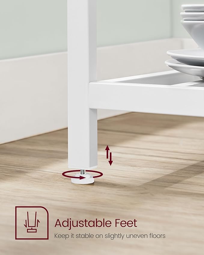 - [No Wobbles, No Scratches] Say bye to small annoyances—the adjustable feet prevent the kitchen island from wobbling on slightly uneven floors and protect your floor from unwanted scratches