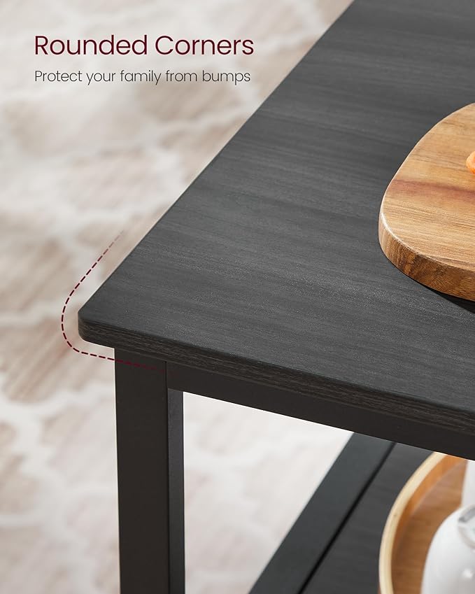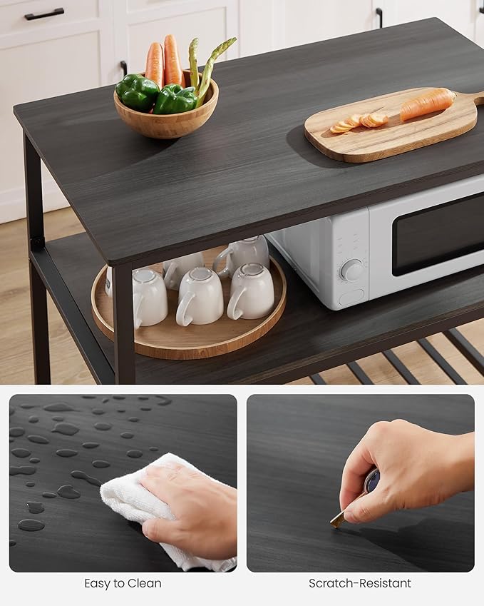 VASAGLE Kitchen Island with 3 Shelves, 39.4 Inches Width Kitchen Shelf with Large Worktop, Stable Steel Structure, Industrial, Easy to Assemble, Ebonised Oak and Black UKKI005B42