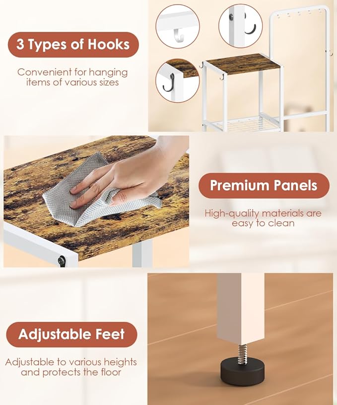 - 【Special Design】: Our kitchen storage rack features 4 adjustable foot pads. They not only protect the floor from damage but also allow you to adjust to different heights to suit your needs. Before purchasing this cookware organizer, please make sure to measure whether there is sufficient space available for storage. ( Product dimensions: 30.7'' L × 11.8'' W × 43.7'' H )